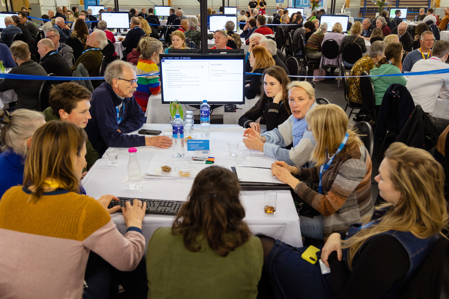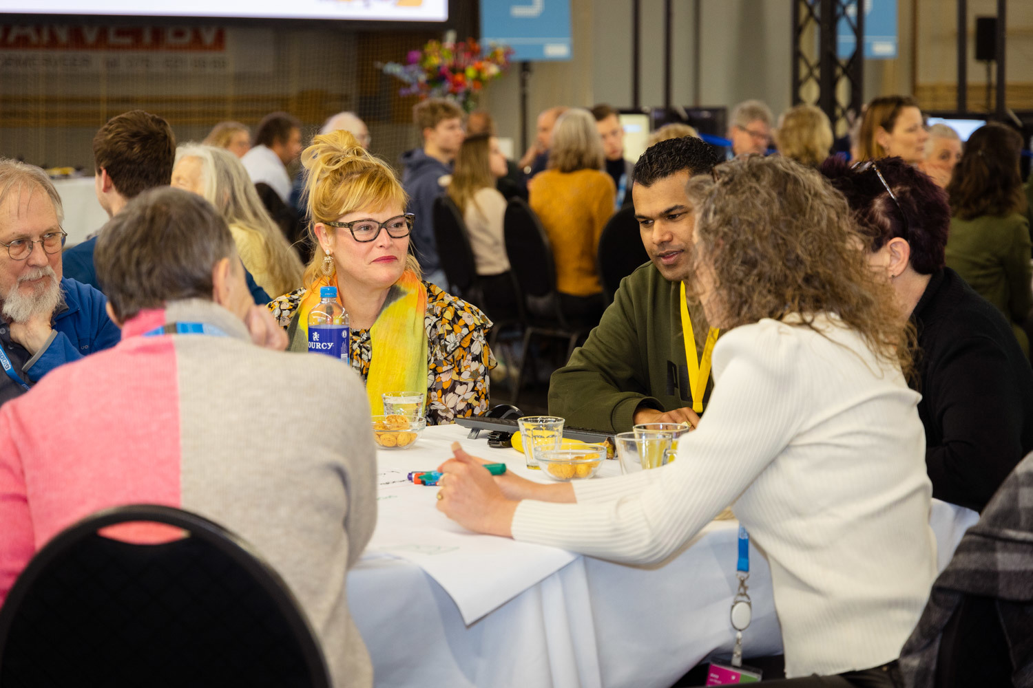 In de ochtend gingen deelnemers in groepjes uiteen. Ze leerden elkaar beter kennen en bespraken welke zorgen zij hebben als het gaat om wonen in de regio. Maar ook waar ze kansen zien en wat ze zelf kunnen doen. Er werd regelmatig van tafel gewisseld zodat iedereen de kans kreeg om verschillende mensen te spreken. Dat zorgde soms voor nieuwe inzichten. Een deelnemer vertelt bijvoorbeeld dat het verassend is dat jongeren eigenlijk veel meer gemeen hebben met ouderen dan gedacht: ‘We verschillen misschien veel in leeftijd, maar niet in wensen en ideeën.’ Uit de tafelgesprekken kwam uiteindelijk een woordwolk, die bestond uit de woorden die de deelnemers aan het eind van hun gesprekken hadden ingestuurd.