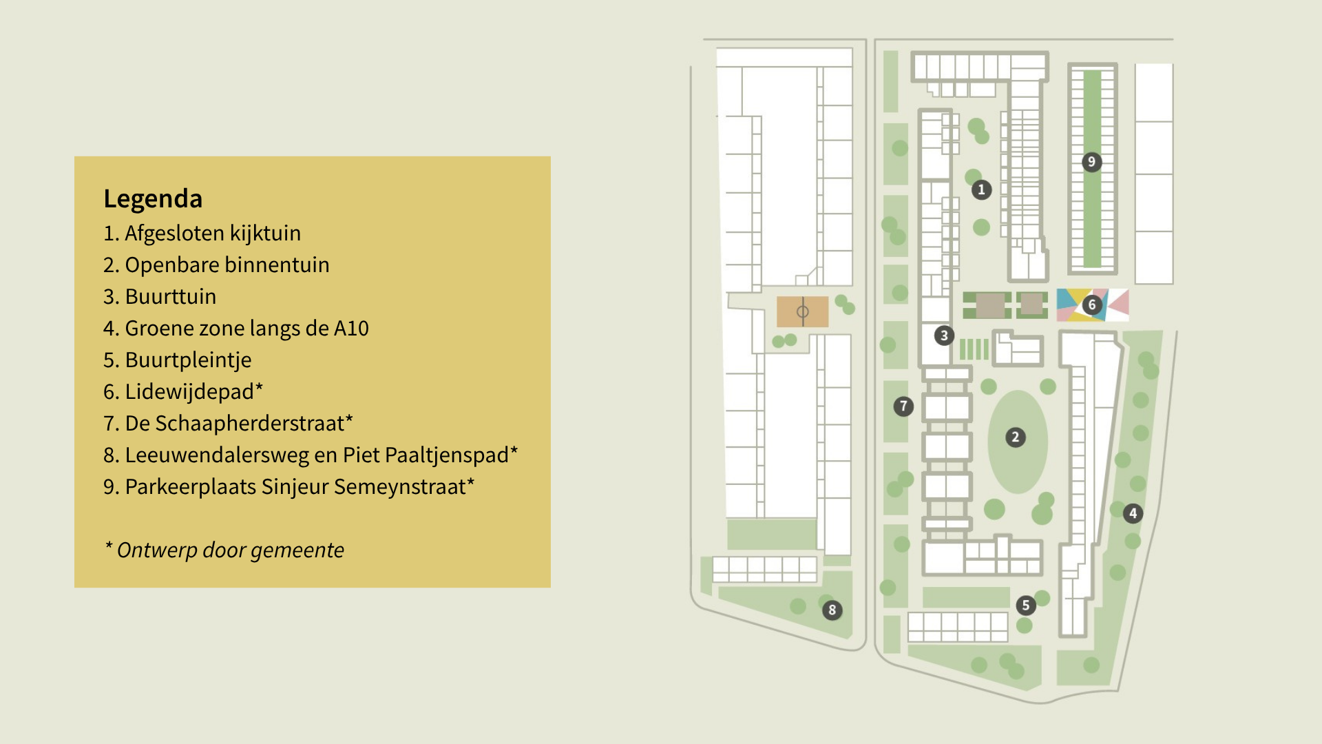 - Het noordelijke deel wordt een afgesloten kijktuin, alleen toegankelijk voor bewoners.