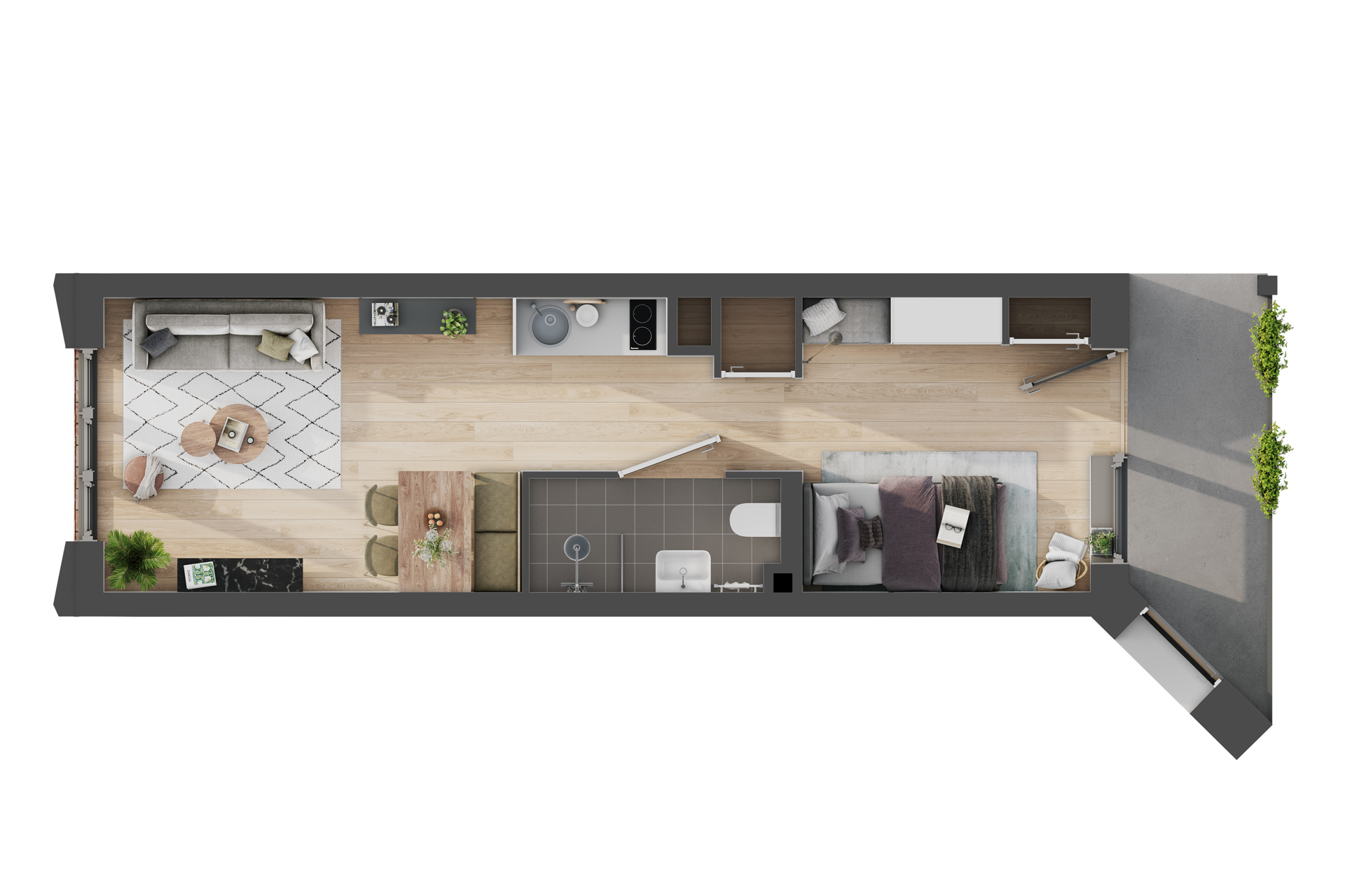- Woonoppervlak: 37m² tot 45m²