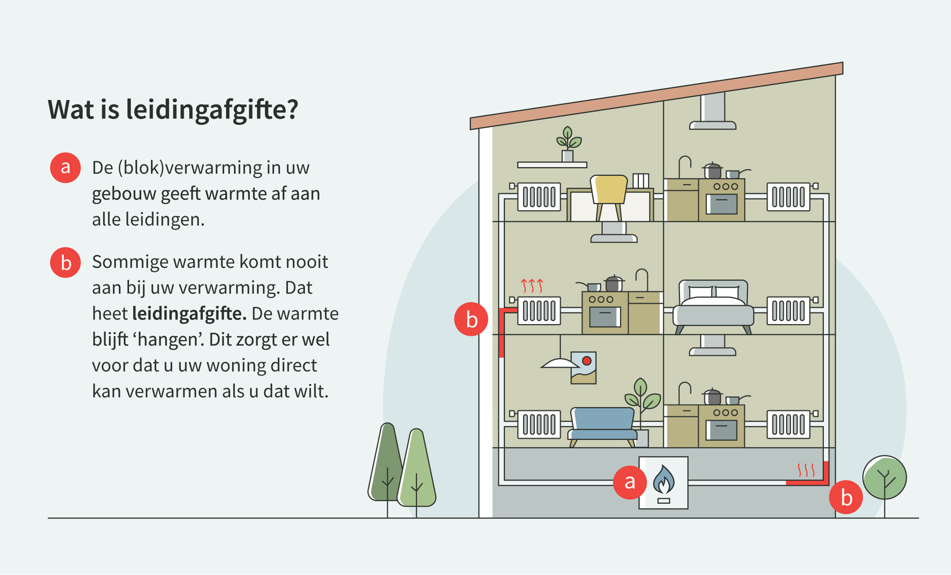 Leidingafgifte is de warmte die wordt afgegeven of ‘blijft hangen’ in de leidingen van uw
